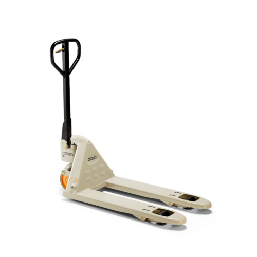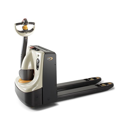 Transpaleteira com plataforma escamoteável e protetores laterais